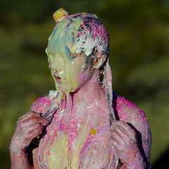 VioletWorld rolled around with Stacey on a tarp covered with custard